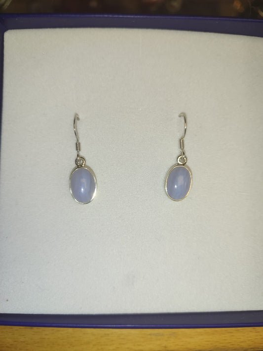 Blue Lace Agate Dangling Earrings-Oval